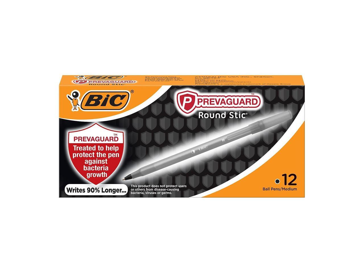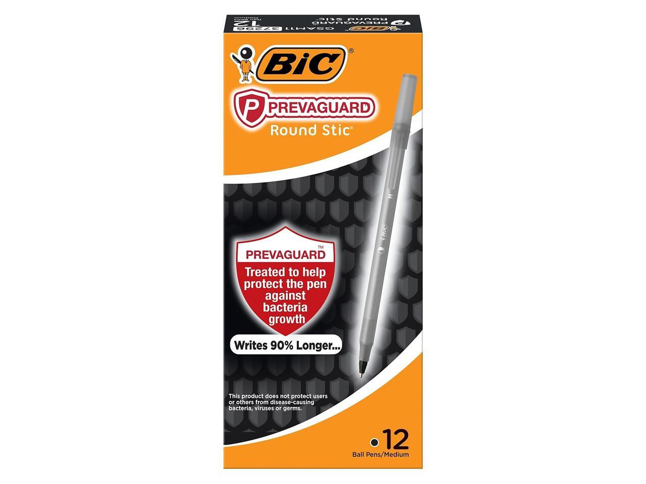 Bic PrevaGuard Ballpoint Stick Pen, Bk Ink/Bk Barrel, 1 mm, Dozen (BICGSAM11BK)
