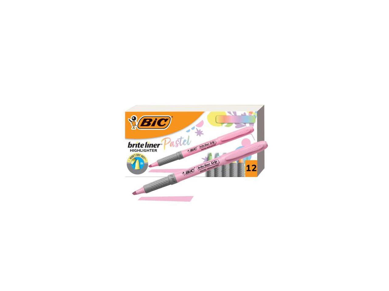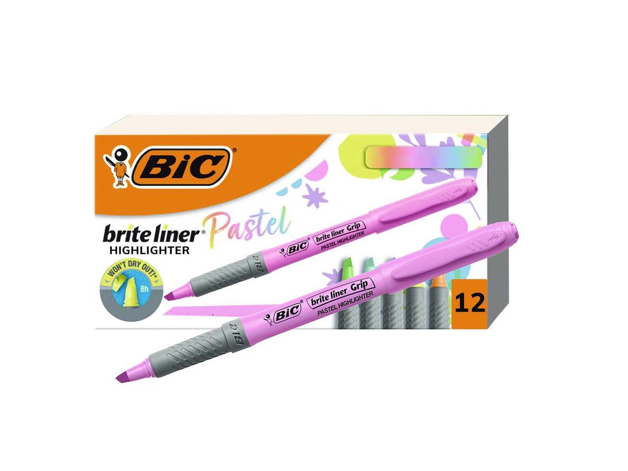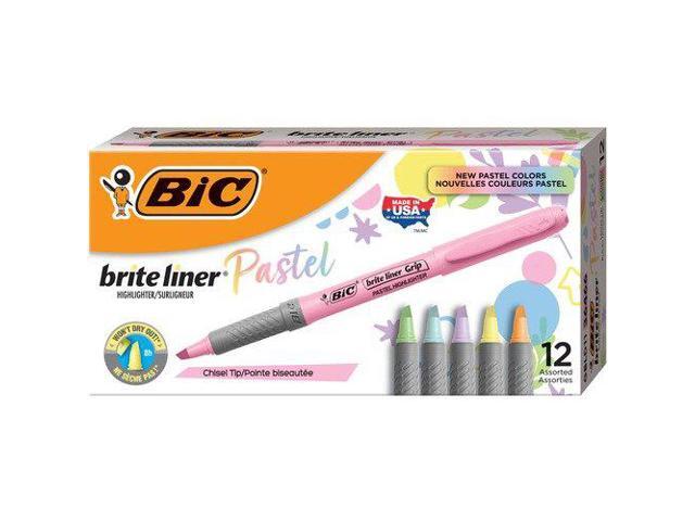 Bic Brite Liner Grip Highlighter, Assorted Pastel, 12/DZ (BICGBLD11AST)