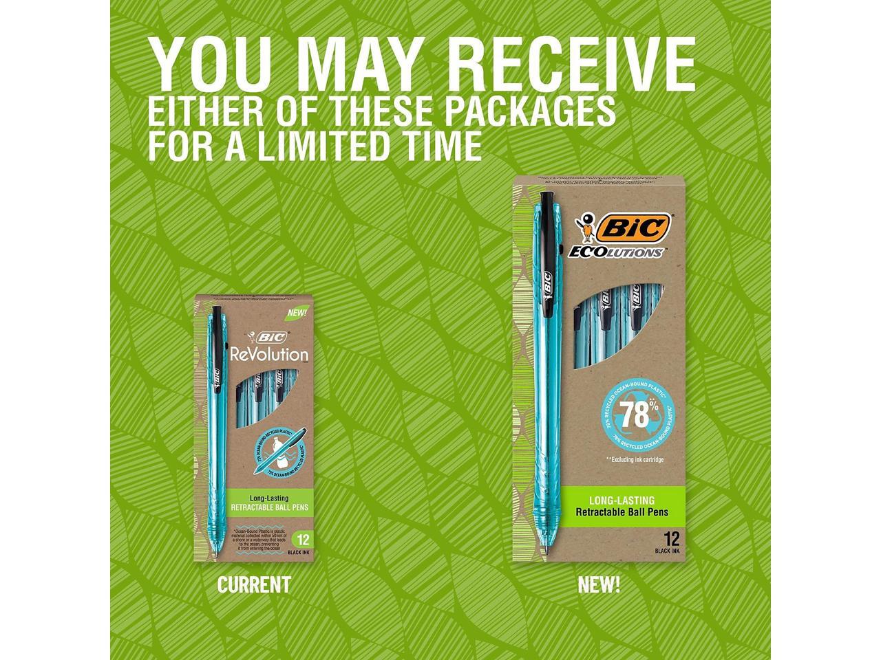 BIC ReVolution Ocean Bound Ballpoint Pen Retractable 1 mm Black 12Pk BPRR11BK