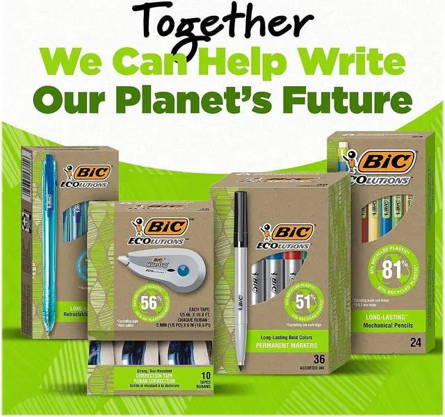 BIC ECOlutions Retractable Gel Pen Medium Point 1.0 mm Blue Ink 12/Pack (RGLE11-BLU)