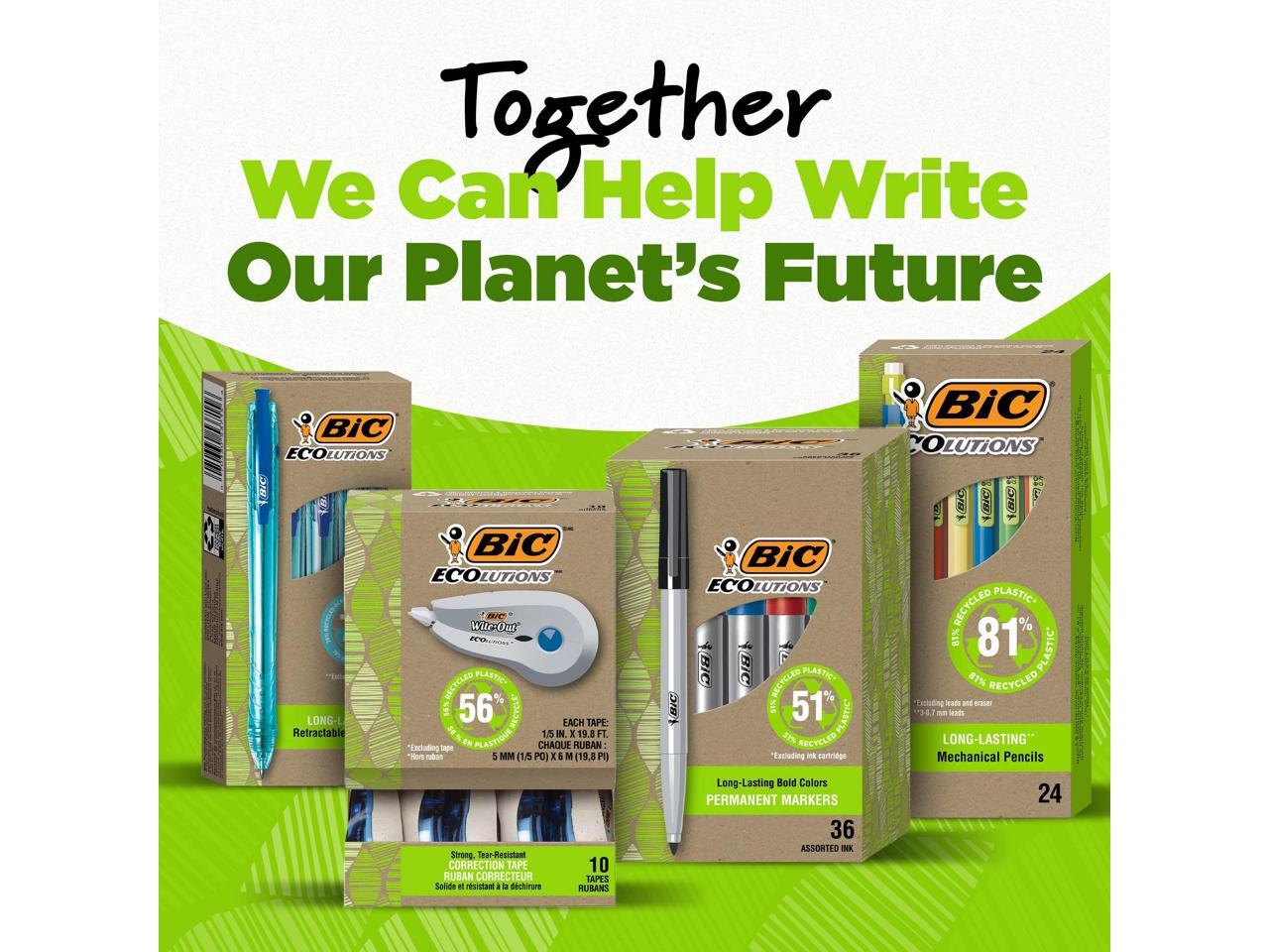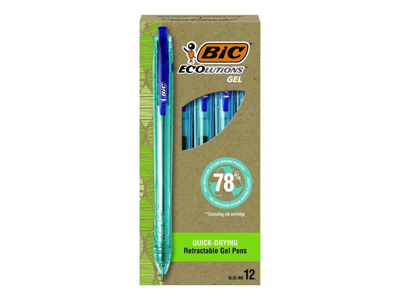 BIC ECOlutions Retractable Gel Pen Medium Point 1.0 mm Blue Ink 12/Pack (RGLE11-BLU)