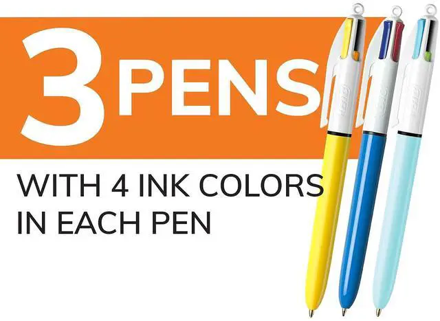 Multifunction pens let you choose between red, black, blue, or green ink with a simple click. Features a pocket clip for convenient carrying. Three pens per pack.