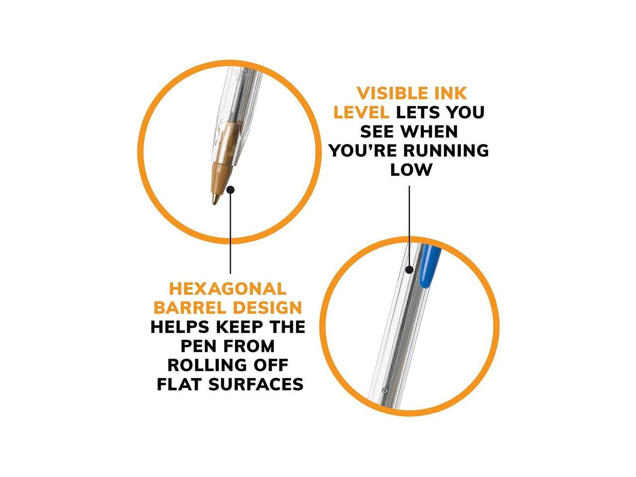 Long-lasting blue ink writes like the first time, every time. Hexagonal barrel shape is roll-proof, so the pen would not roll off surfaces.