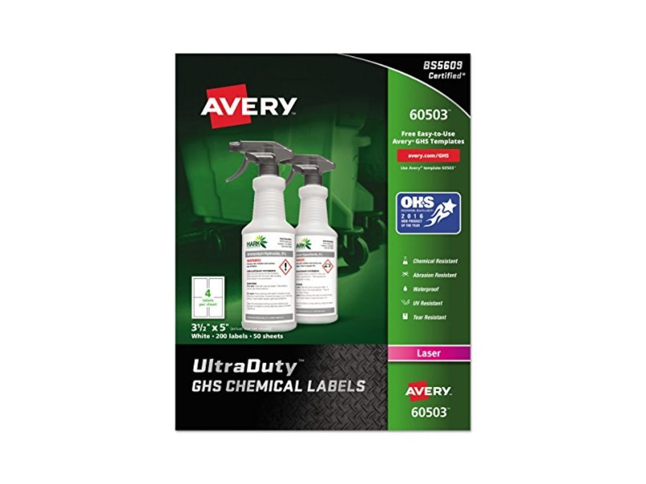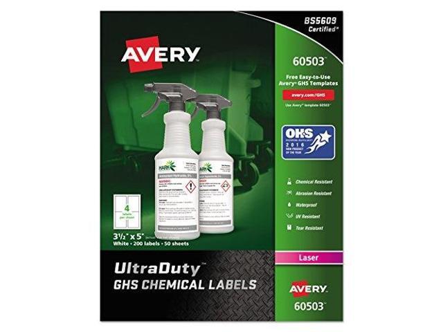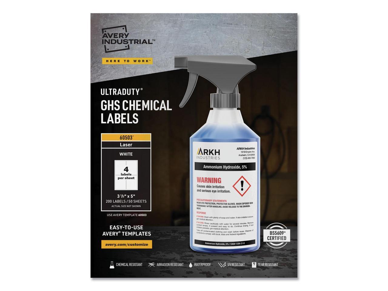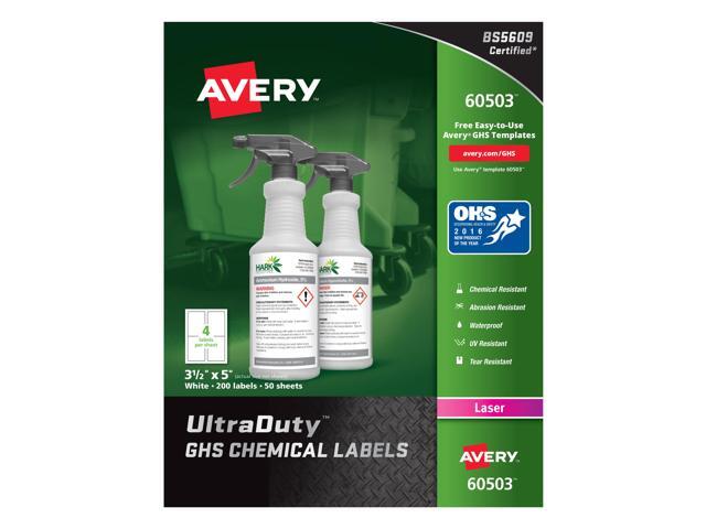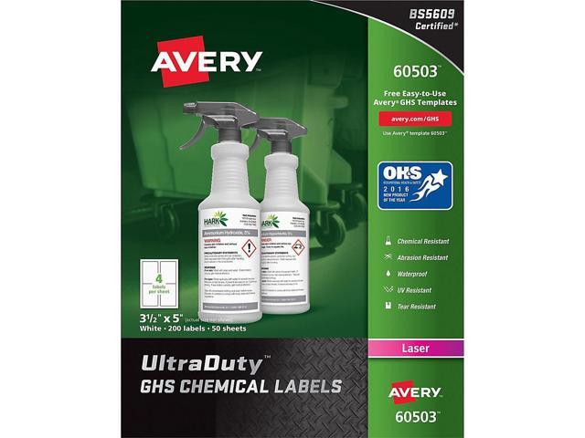 Avery Chem Label, 3-1/2"W x 5"H, 200 Lbls, PK200 Synthetic Film 60503