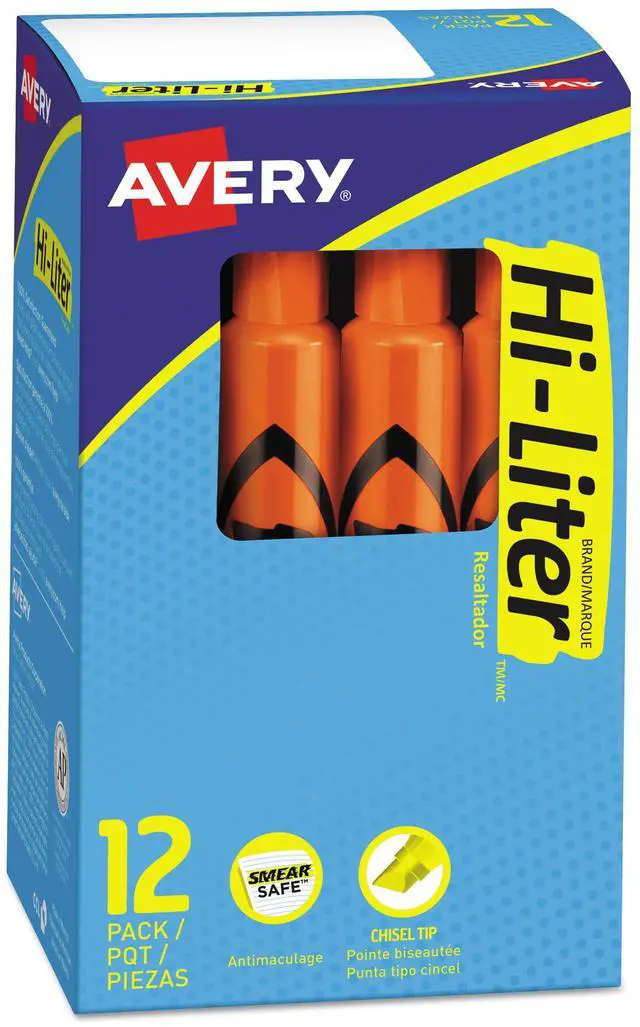 Avery Hi-Liter Highlighters Fluorescent Orange Chisel Tip Dozen 24050