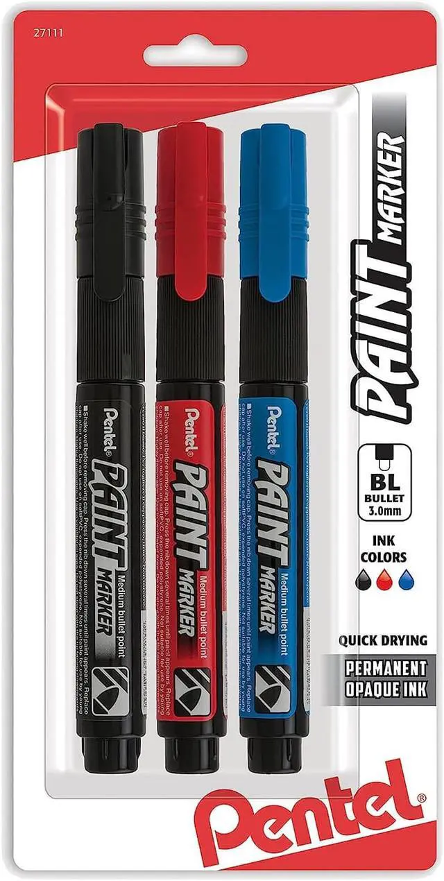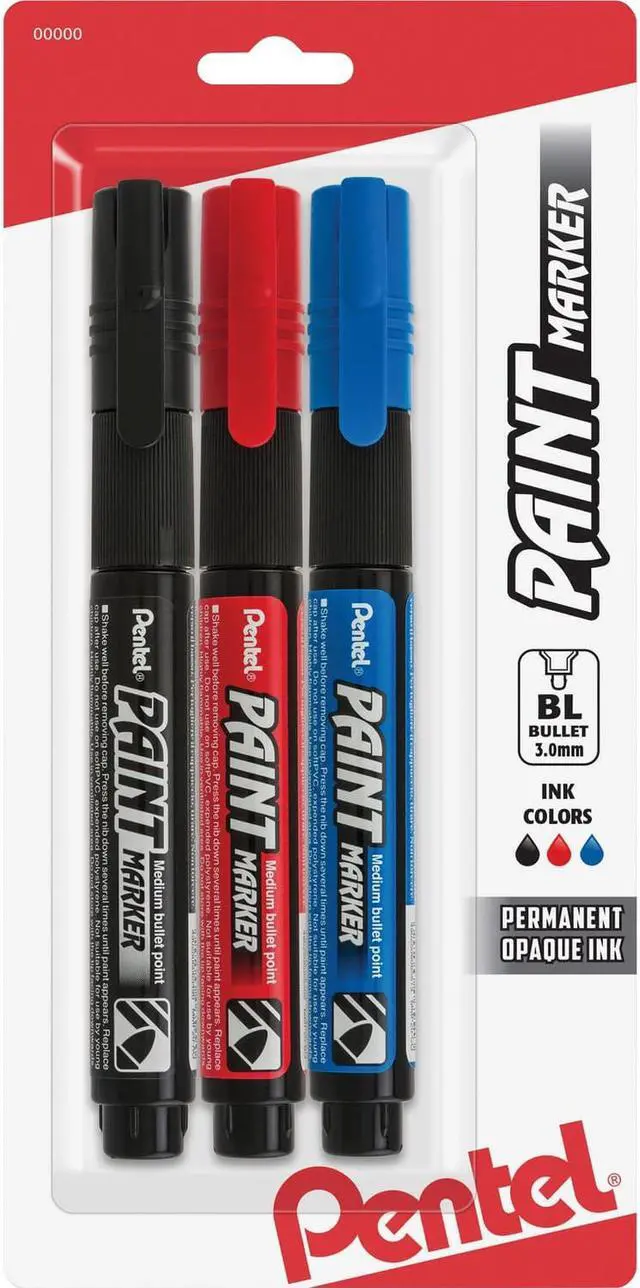 Pentel Paint Marker Opaque Ink 3.0 mm Bullet Tip 3/PK Assorted MMP20BP3M
