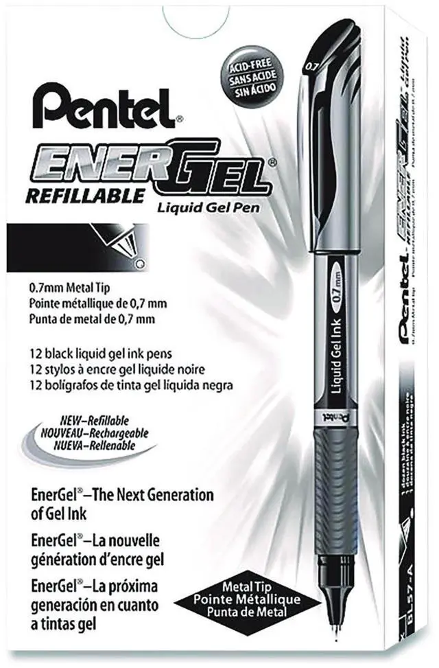 Pentel EnerGel Deluxe Gel Pen 0.7mm, Black Ink, 12-Pack BL57A