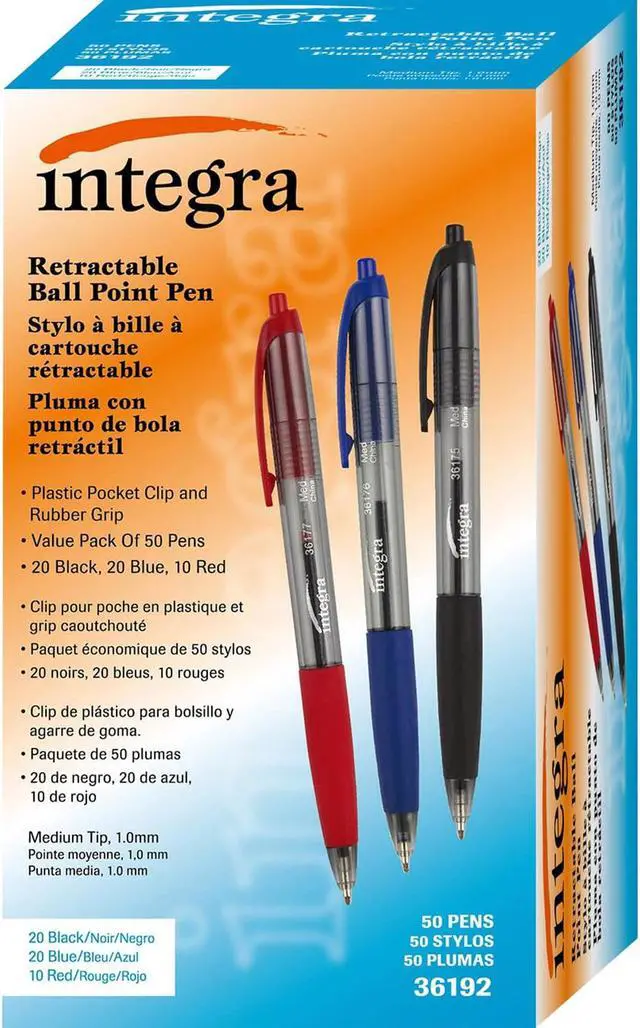 Integra Retractable Ballpoint Pen 1.0mm 50/BX Ast 36192