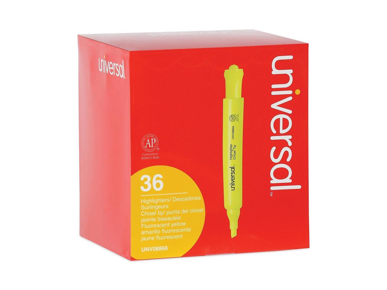 Universal Desk Highlighter Chisel Tip Fluorescent Yellow 36/Pack 08866
