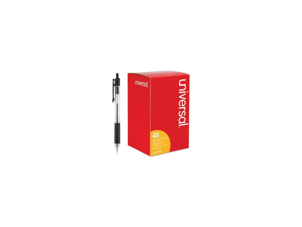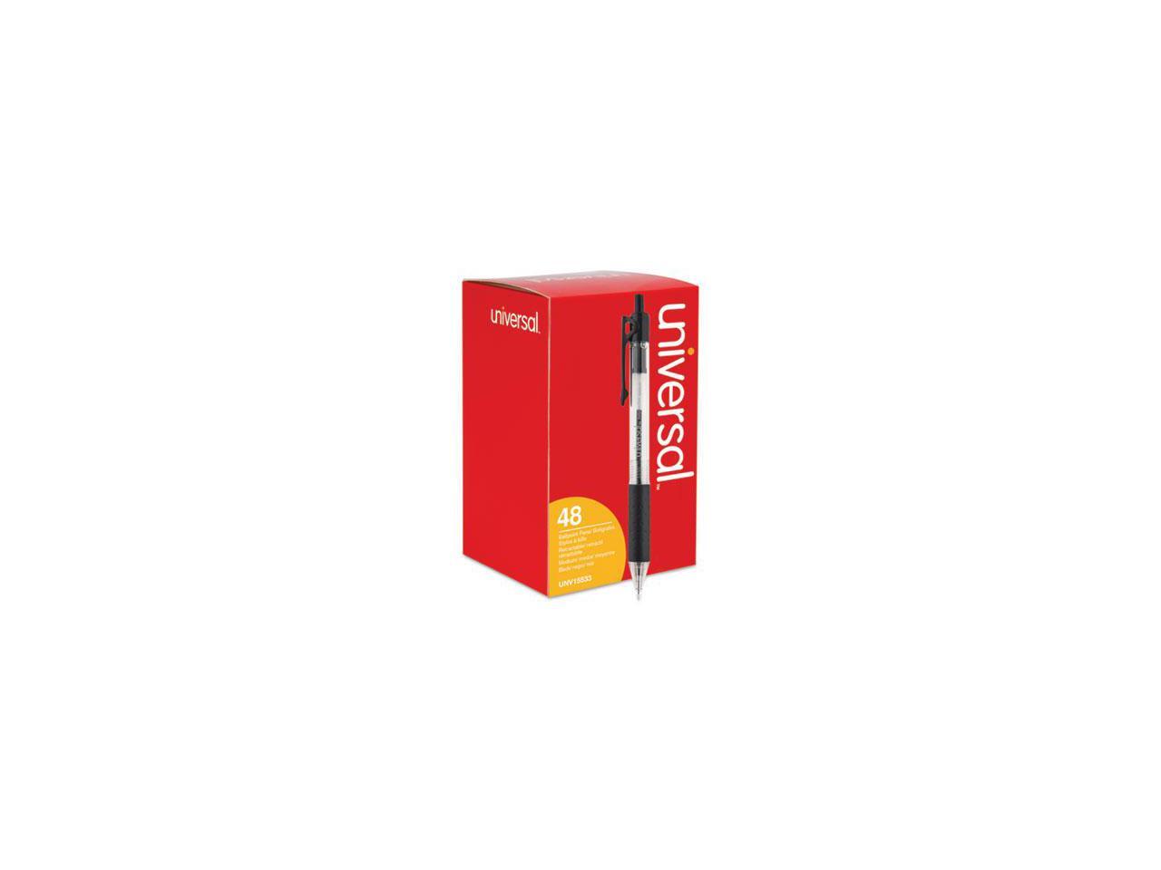 Universal Comfort Grip Clear Barrel Retractable Ballpoint Pen Black Ink 1mm 48/Set 15533