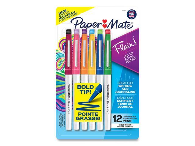 Flair Felt Tip Porous Point Pen Stick Bold 1.2 mm Assorted Ink Colors White Pearl Barrel 12/Pack 2125414