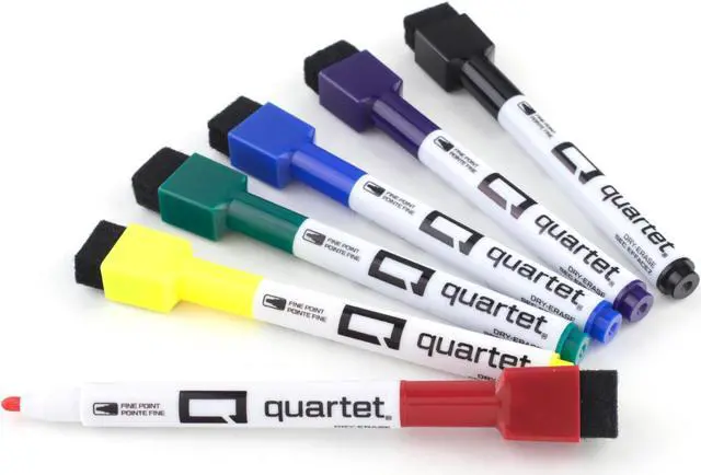 Quartet ReWritables Mini Dry-Erase Markers: These miniature dry-erase markers have all the writing power of Quartet markers in a compact, mini design. Create thin lines with the fine point tip. The precise lines are ideal for clear, distinct handwriting and detailed drawings. Quickly make corrections with the convenient magnetic eraser cap. When done, store the marker directly on your magnetic board, where its easily within reach for future use. These miniature markers are the ideal choice for writing on personal size whiteboards at home, school or work.
