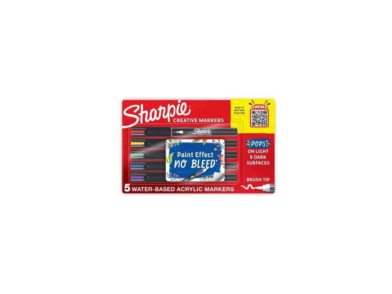 Sharpie Creative Markers Water-Based Acrylic Brush Tip Assorted Colors 5Ct
