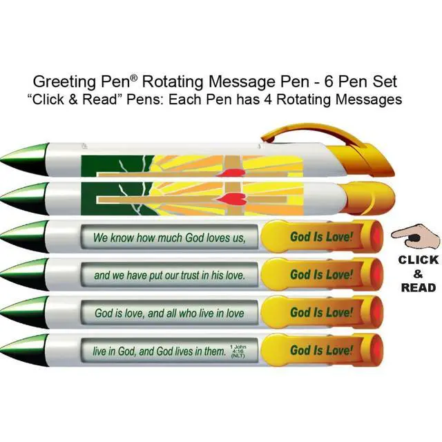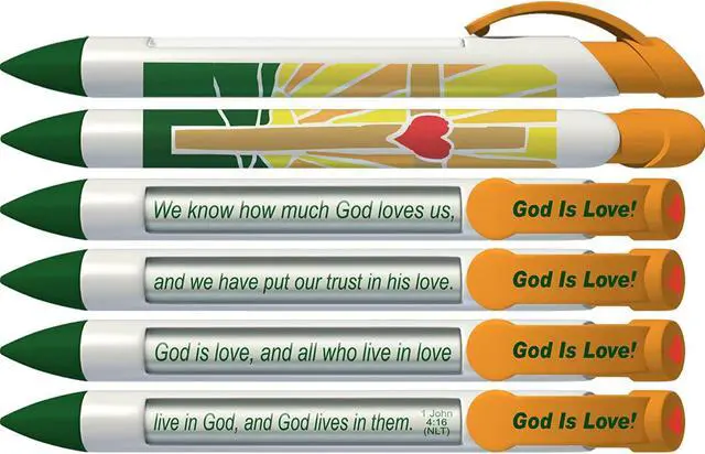 Greeting Pen God is Love Scripture Pens, Scripture Verses with Rotating Messages, 6 Pen Set (36052)