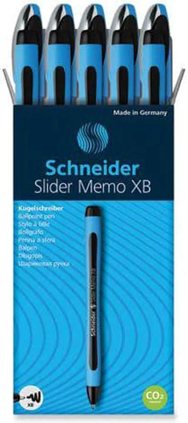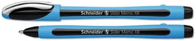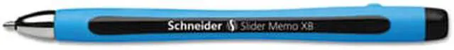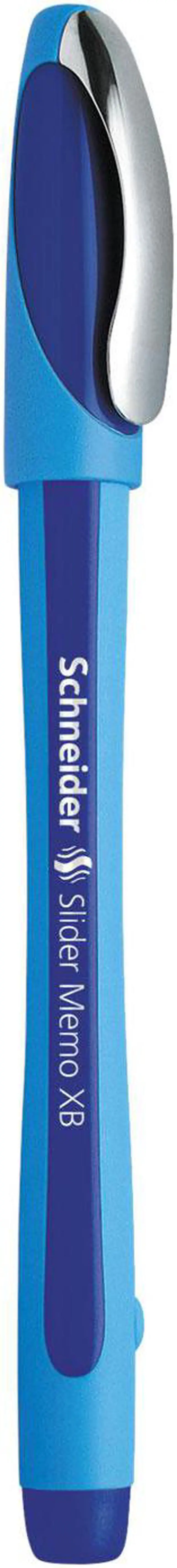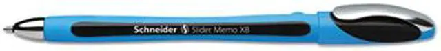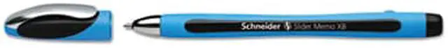 The Slider Memo XB ballpoint pen features Viscoglide ink technology for smooth-glide writing. An Extra-Broad (XB) stainless steel tip enhances ink-flow, while laying down extra-bold, 1.4 mm lines. Quick-drying ink resists smudging, even when highlighted. Rubberized, ergonomic barrel is shaped to reduce hand fatigue during longer writing sessions. Cap with metal clip fits neatly on the end of the barrel. Produced CO2 neutrally. Pen Sub-Brand & Product Family: Slider Memo XB; Pen Type: Ballpoint Pen; Pen Style: Stick; Pen Tip Type: Conical.