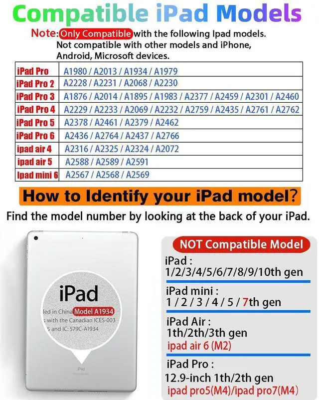 | Compatible Devices | IPad mini 6th gen, iPad Air 4th/5th gen, iPad Pro 12.9 inch 3th/4th/5th/6th gen, iPad Pro 11 inch 1th/2th/3th/4th gen |