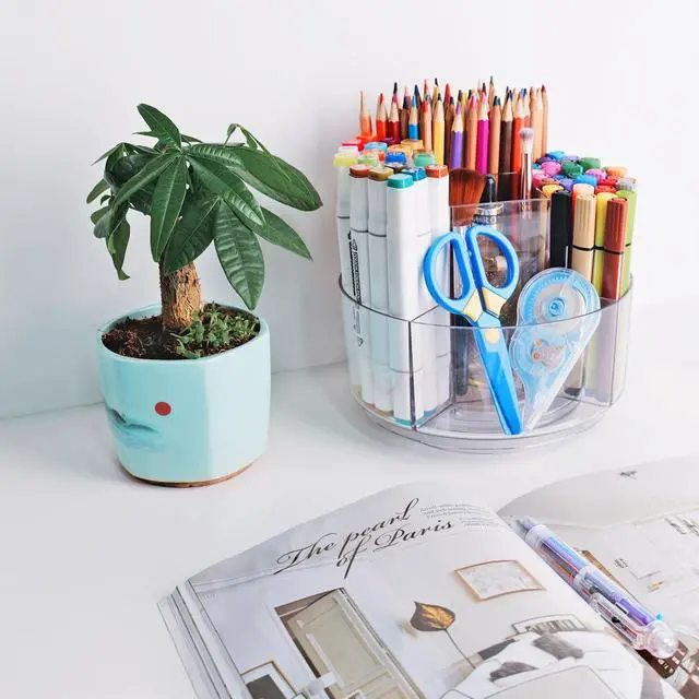 Flytreal pen holder features 360 degree rotation. It rotates smoothly for easy access to each of the 5 sections. The industrial design of rotation will last for a long time.