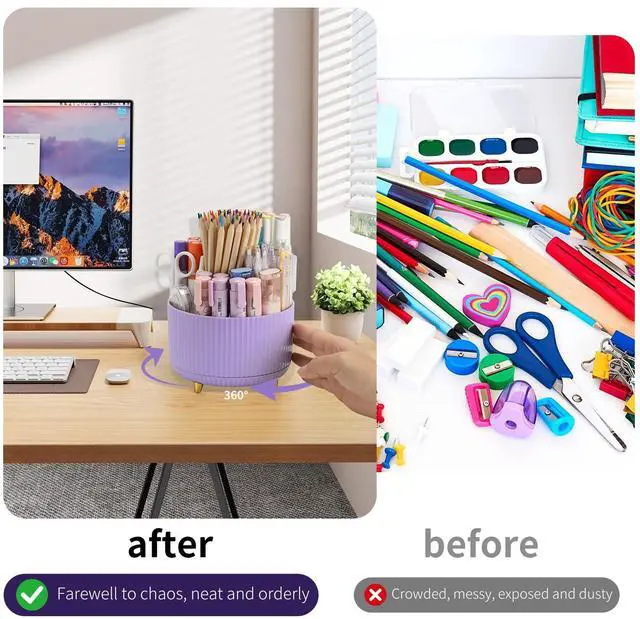360°Rotating Pen Holder For DeskThe Desk Organiezr can smoothly rotate 360 ° left or right making it easy to select the items you need