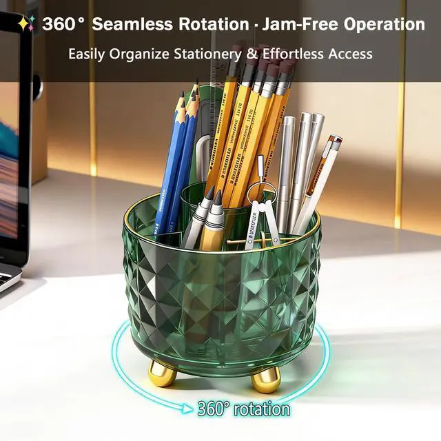 360° Rotating Design: This pen organizer for desk features a 360° rotating base, it rotates very smoothly and does not get stuck, allowing you to easily access all your items without hassle.
