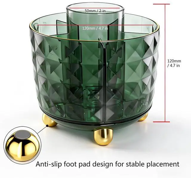 Stable Placement: The anti-slip foot pad design ensures stable placement on any desk surface, preventing the makeup brush holder from sliding or tipping over.