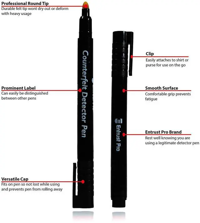 ENTRUST PRO has manufactured the highest quality counterfit money pens for over a decade and is trusted by thousands of businesses.