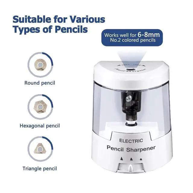 Electric Pencil Sharpener, Battery (Not Included) USB Powered, Portable for NO.2 Pencils, Automatic and Durable with 3 Sharpness Options - Classroom, Home, Office White