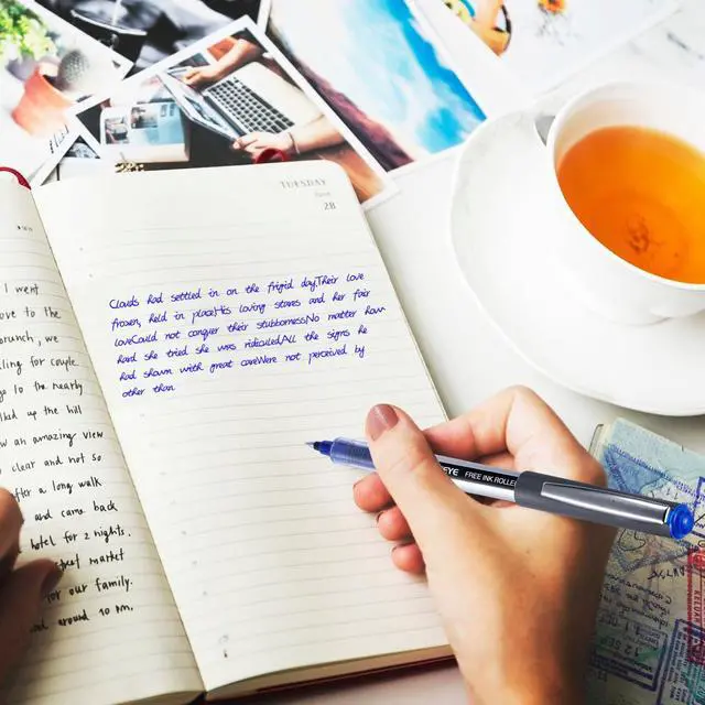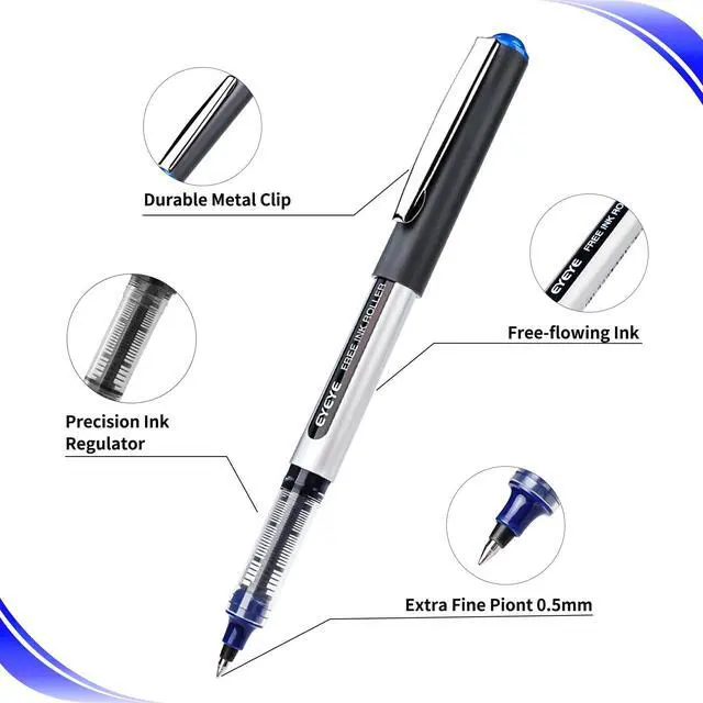 • Smooth Writing: Eyeye rollerball pens blue writes smoothly, gliding effortlessly across the page effortlessly, delivering super smooth precision for crisp lines and detailed writing. Liquid ink pens fine point smooth writing pens for journaling, taking notes, general writing, signatures and other uses anything on paper you have to write.