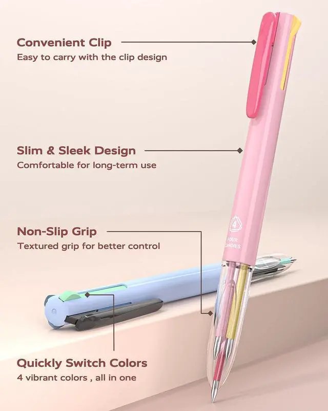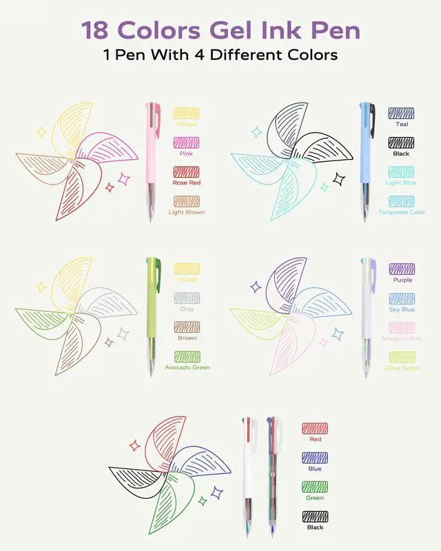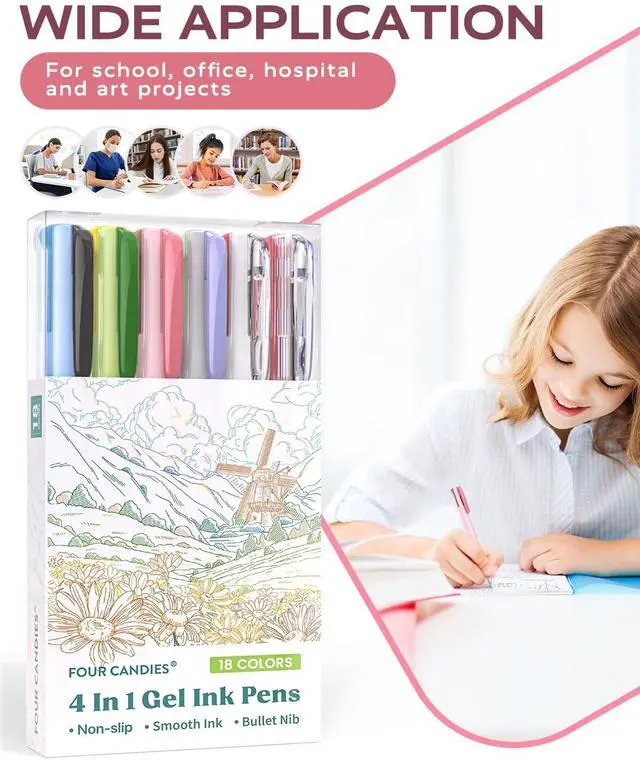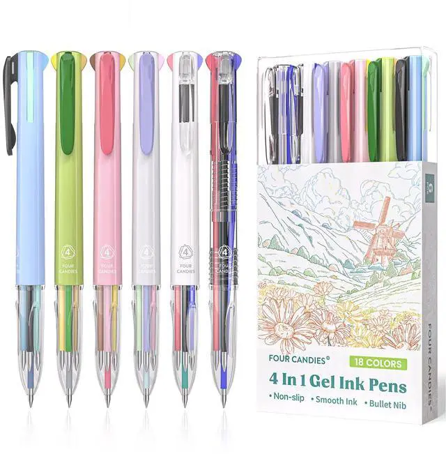 Each pen comes with 4 ink colors, giving you 18 colors in total. The grip is slimmer and more comfortable than regular pens, so it’s perfect for long use.