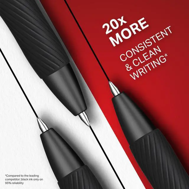 Smoother, bolder, cleaner, and quicker drying than the leading competitor (Compared to the leading competitor; across black, blue, and red ink based on 95% reliability)