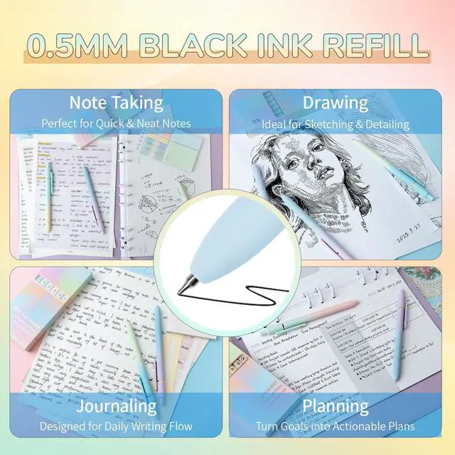 These 0.5mm fine point pens feature quick-drying black ink that writing smoothly across paper, making them perfect for writing, doodling, or coloring. The sleek and cute designs are not only practical but also make great office and school supplies or gifts for women, teachers, and students.