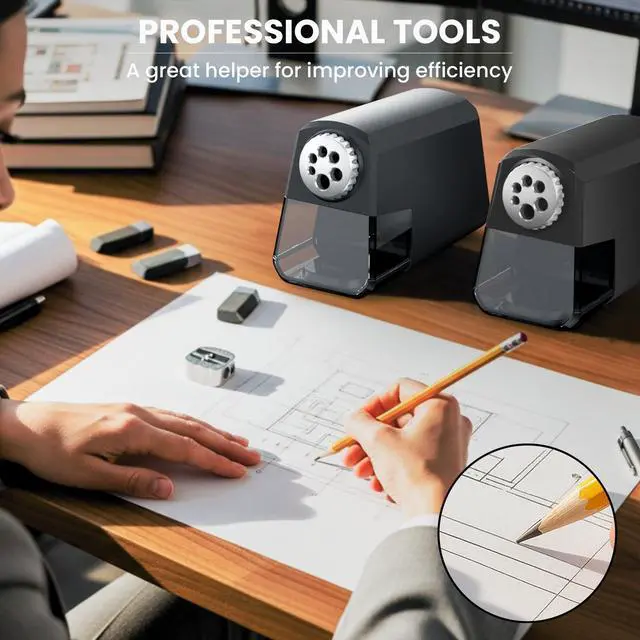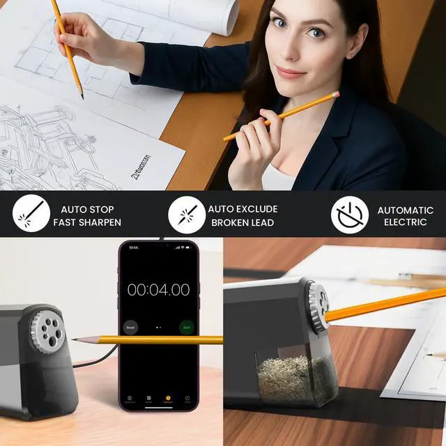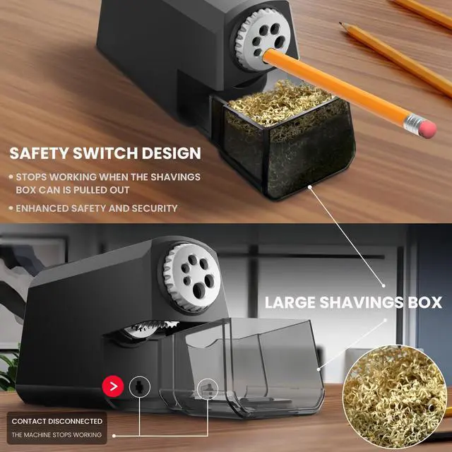 Product has an auto-stop function. Apply light pressure to guide the pencil, and when it stops, it means it has been sharpened.