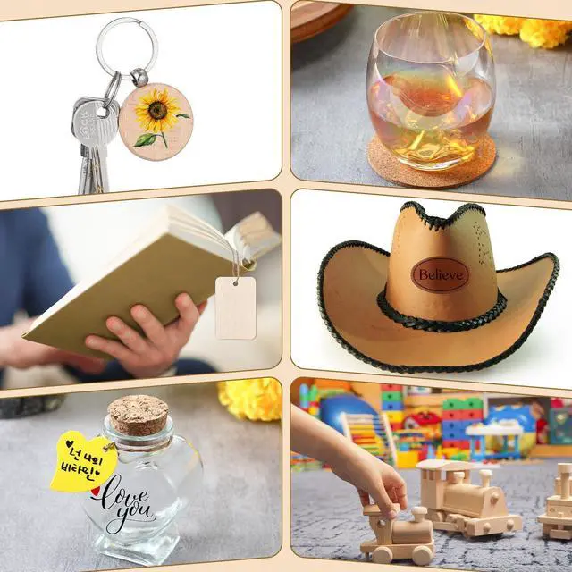 Our laser materials are indeed a delightful treat with plentiful items, including PU leather keychains, different styles of wooden keychains, colorful pearlescent papers, wooden bookmarks, wooden cubes, cork mats, and more. This laser cutting materials kit gives you a profound variety for your engraving projects.
