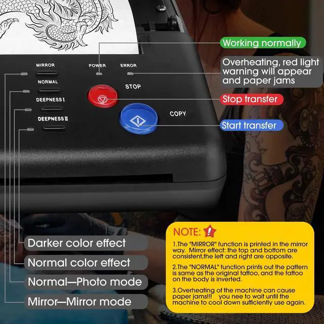 Tattoo Transfer Stencil Machine is a machine for professional tattooing as well as tattoo enthusiasts, it allows you to convert your designs directly from original drawings to stencil paper in a very short time, making it easy to transfer to the skin, it is a reliable copier !
