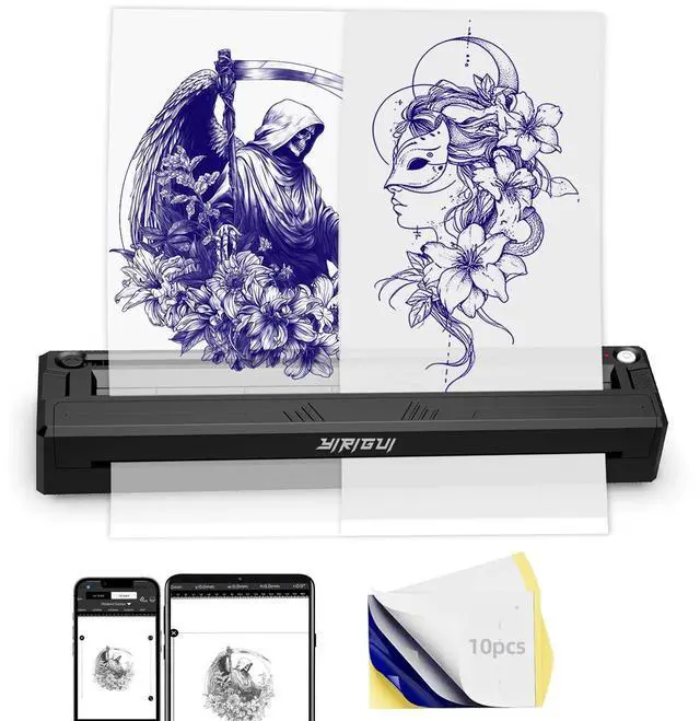 Precision Printing: With app - controlled custom sizing up to A4 and the ability to print realistic portraits, our tattoo printer delivers precise and high - quality stencils. Say goodbye to incomplete or faded prints like those from some competitors. Also, enjoy inkless printing, which eliminates ink clogging and cleaning issues