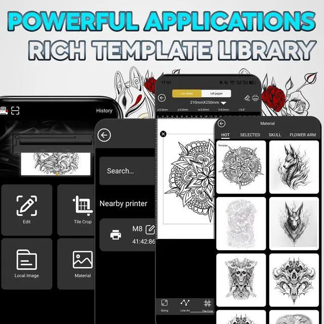 User - Centric "TATTOO PRT" App: Our app is a game - changer. It offers one - click printing for tattoo beginners, simplifying the operation process. For professional tattoo artists, features like large image cropping, size adjustment, mirroring, line art extraction, realistic printing, and local upload enable them to turn their ideas into reality quickly