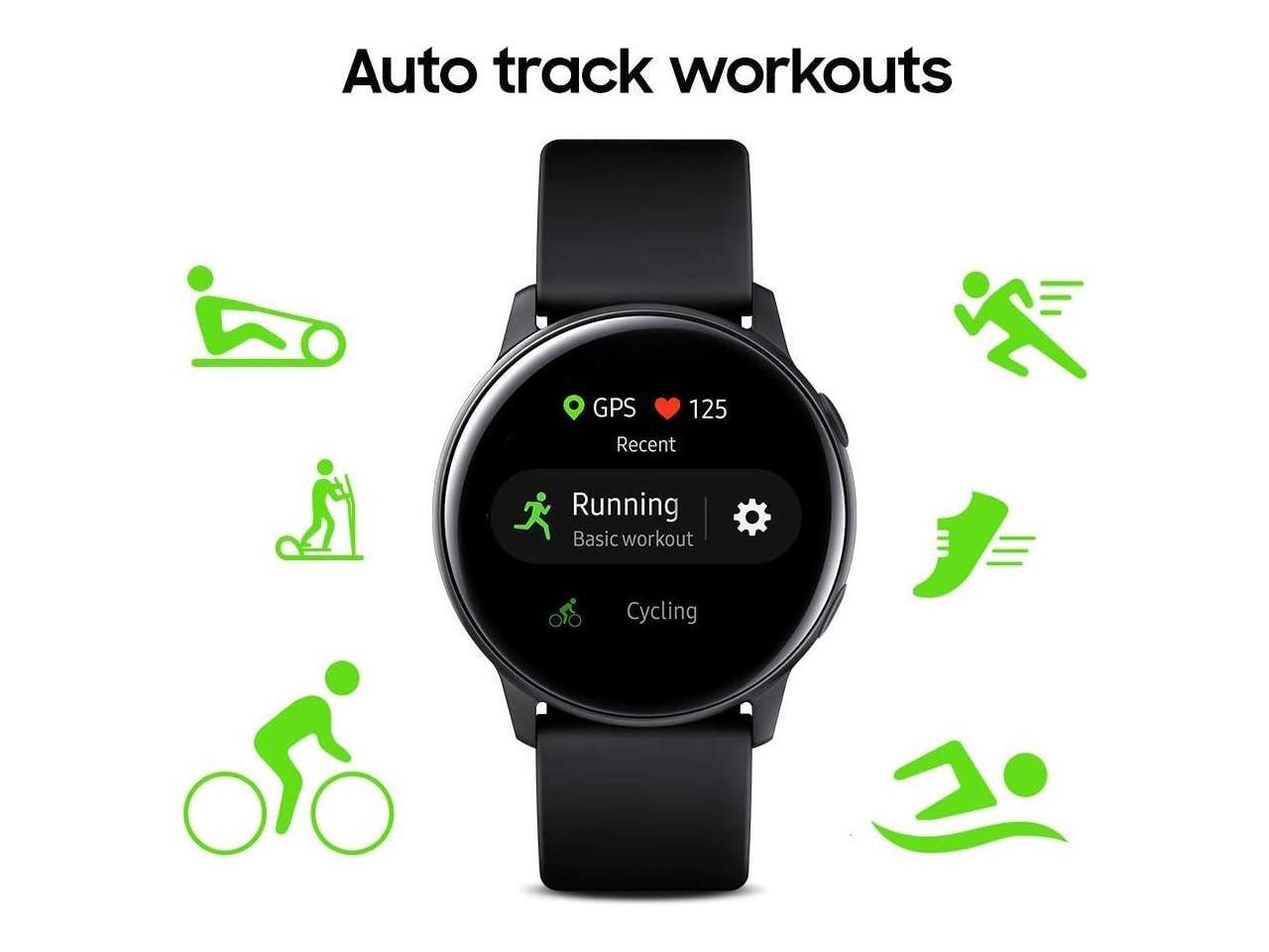 Samsung Galaxy Watch Active (40mm), Black (Bluetooth) - Wrist - Accelerometer, Barometer, Gyro Sensor, Health Sensor, Heart Rate Monitor, Ambient Light Sensor - Timer, Phone, Push Notification