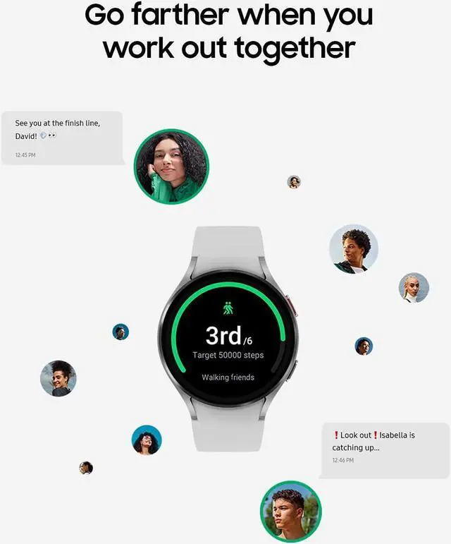 PRODUCT OVERVIEW Crush workouts and all your health goals with Samsung Galaxy Watch4, the smartwatch that gets you. Push yourself to the next level with Auto Workout Tracking, Advanced Run Coaching, and Group Challenges. Track heart and lung endurance with oxygen level monitoring. Combining style and function, Galaxy Watch4 offers a number of fashionable bands to match your every mood and all-day comfort to keep you looking great from the locker room to the conference room. Staying on top of your day on the go is a breeze with Google app integration and call-text-notification connectivity.