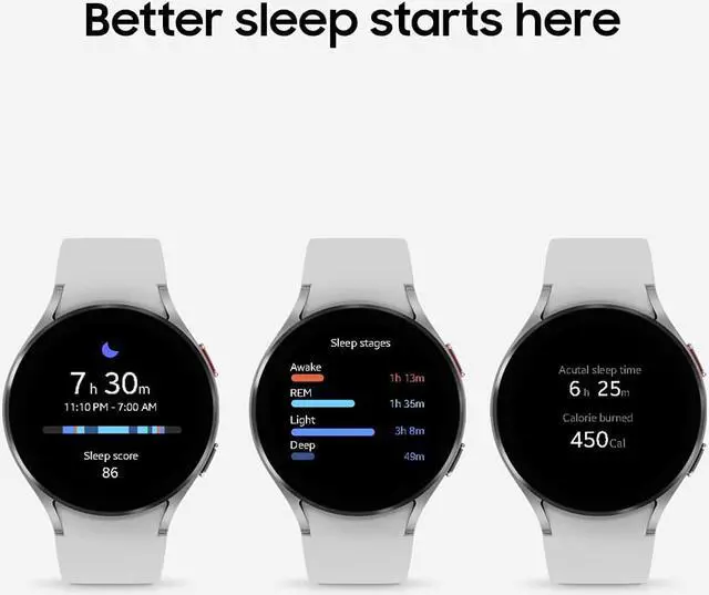 KEY FEATURES BODY COMPOSITION ANALYSIS: Galaxy Watch4 is the first smartwatch to off body composition data right on your wrist, On your own schedule, now you can get readings on body fat, skeletal muscle, body water, basal metabolic rate, and Body Mass Index BETTER SLEEP STARTS HERE: Wake up feeling refreshed and recharged with advanced sleep tracking; When you go to bed, your Galaxy Watch4 sleep tracker starts monitoring your sleep and SpO2 levels continuously