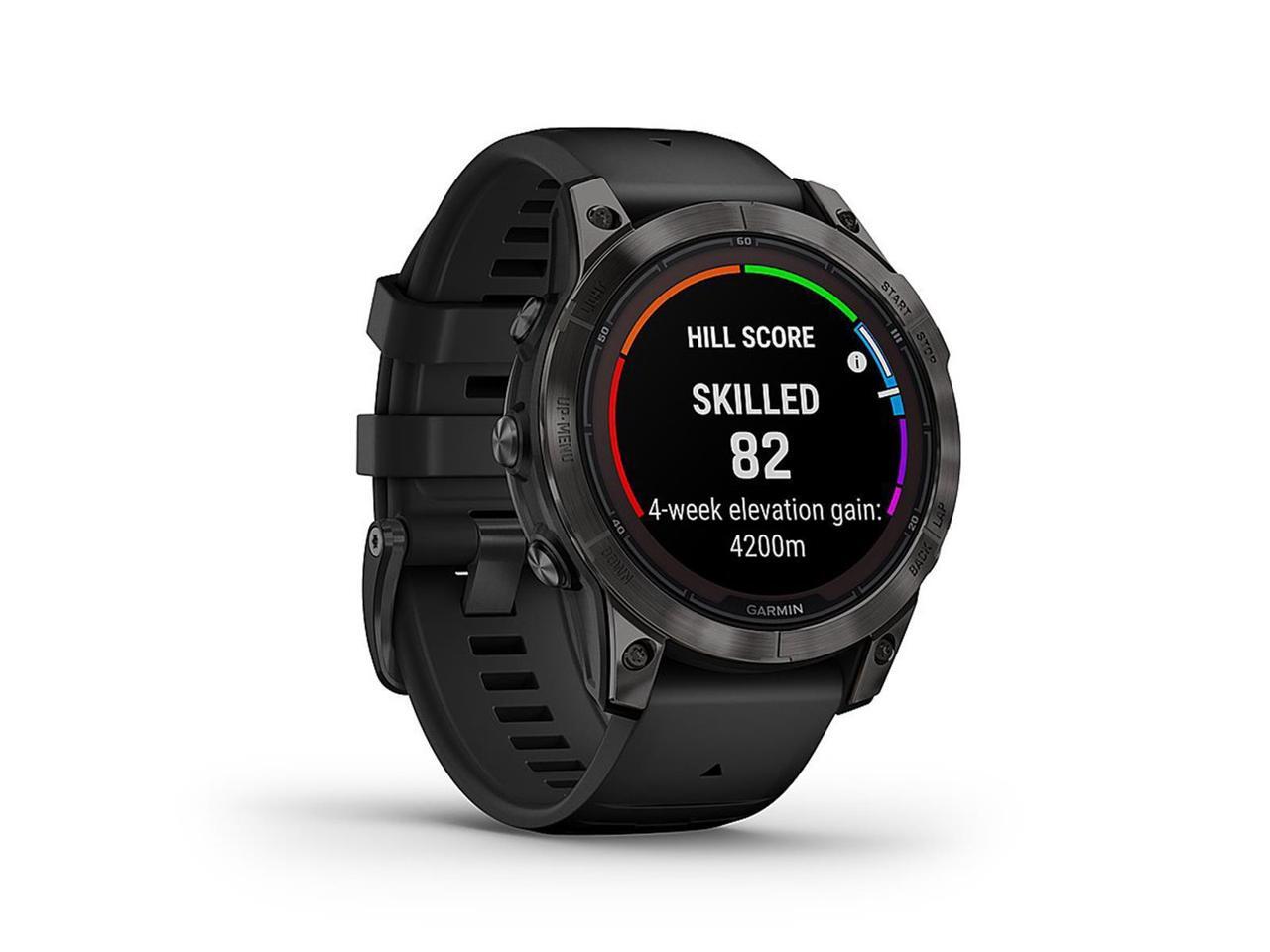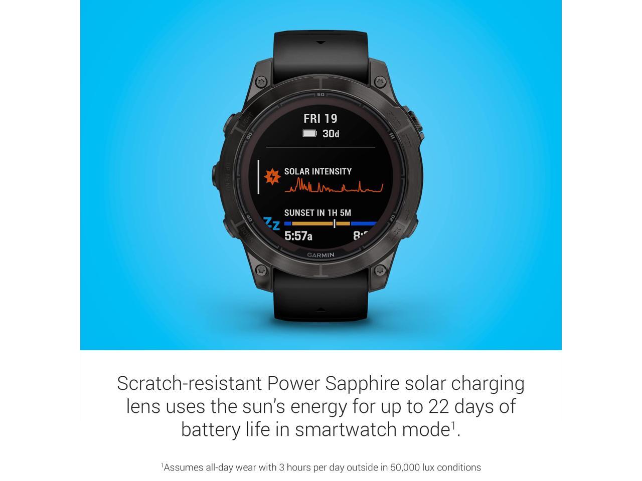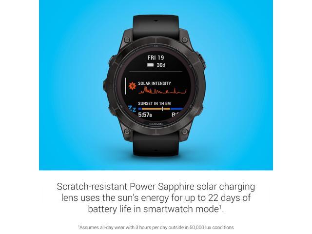 - Multisport GPS watch with a 1.3 display in a resilient 47 mm fiber-reinforced polymer case with a titanium bezel and rear cover. Scratch-resistant Power Sapphire solar charging lens uses the suns energy for weeks of battery life in smartwatch mode. Built-in LED flashlight with variable intensities and strobe modes gives you greater awareness while you train at night and provides convenient illumination when you need it. New hill score feature measures your running strength/endurance during ascents and gauges your progress over time. New endurance score feature combines training data from all your athletic pursuits to help you better understand how training impacts your overall endurance