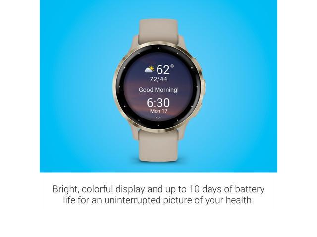 - Designed with a bright, colorful display, get a more complete picture of your health, thanks to battery life of up to 10 days in smartwatch mode. BodyBattery energy monitoring helps you understand when youre charged up or need to rest with even more personalized insights based on sleep, naps, stress levels, workouts and more. Get a sleep score and personalized sleep coaching for how much sleep you need - and get tips on how to improve plus key metrics such as HRV status to better understand your health (data presented is intended to be a close estimation of metrics tracked). Find new ways to keep your body moving with more than 30 built-in indoor and GPS sports apps, including walking, running, cycling, HIIT, swimming, golf and more. Enjoy the convenience of making and taking phone calls from your wrist - even use your smartphones voice assistant to respond to text messages and more (when paired with your compatible iPhone or Android smartphone); plus, you can respond to texts via