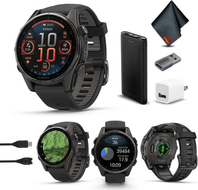The Fenix 8 smart watch tracks a wide range of activities, including recreational diving, HIIT workouts, backcountry skiing, MTB dynamics, and surf activity.