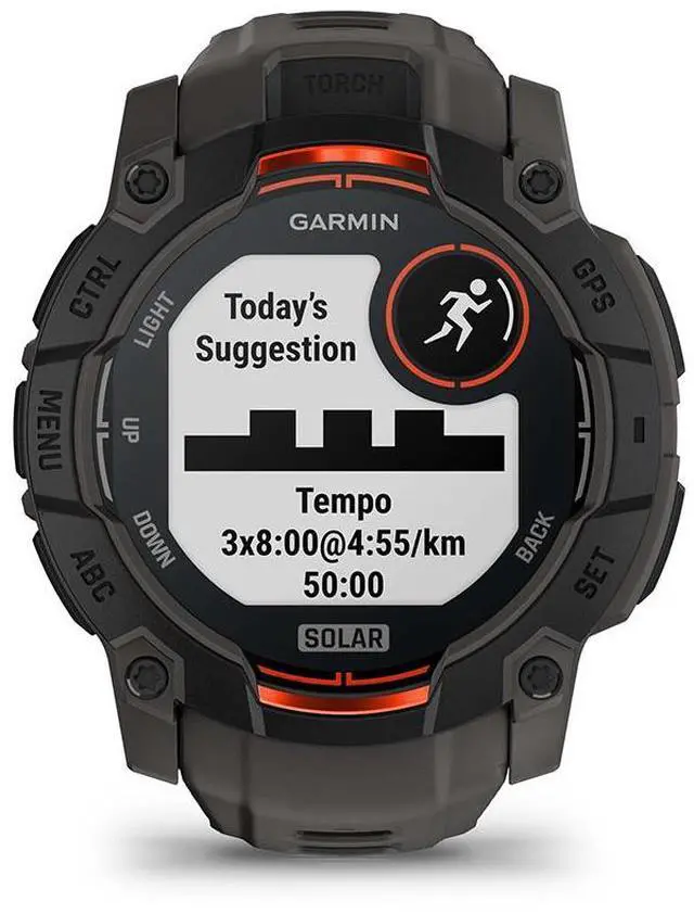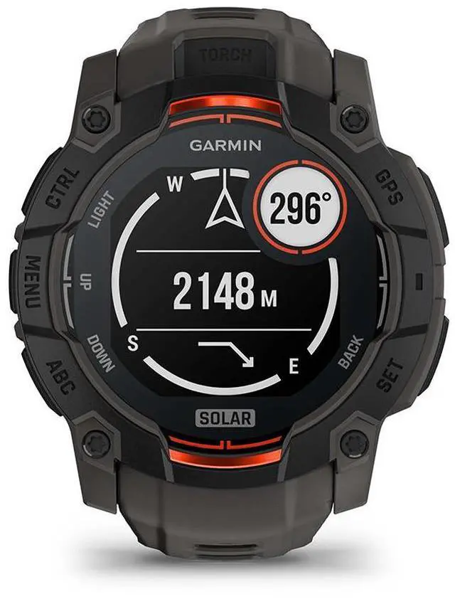 Instinct® 3 is the rugged 50 mm GPS smartwatch with a 1.1 display, built-in flashlight and unlimited battery life in smartwatch mode with solar charging (assumes all-day wear with 3 hours per day outside in 50, 000 lux conditions). With bolted construction, a metal-reinforced bezel and scratch-resistant lens, it can take on your toughest adventures. Its engineered to MIL-STD-810 standards for thermal and shock resistance and is also 10 ATM water-rated. To keep you on track, the Instinct 3 smartwatch includes a built-in 3-axis compass and barometric altimeter. Plus, multi-band GPS with SatIQ technology delivers superior positioning while also optimizing battery life.