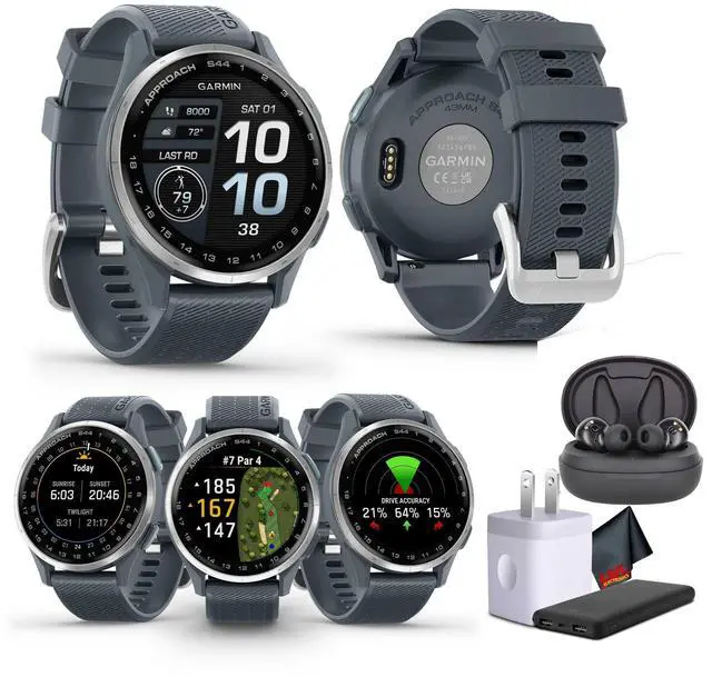 The Garmin Approach S44 GPS golf smartwatch delivers essential on-course features in a lightweight, stylish design. Its vibrant 1.2 -inch AMOLED touchscreen offers crisp visuals, making it easy to view distances to the front, middle, and back of the green, as well as hazards and layups. Preloaded with 43, 000+ golf courses worldwide, it provides precise yardages and detailed hole views to help golfers plan their shots with confidence. With a Garmin Golf membership, players can unlock advanced features like enhanced CourseView maps, PlaysLike Distance adjustments, and green contour data for more accurate shot planning.