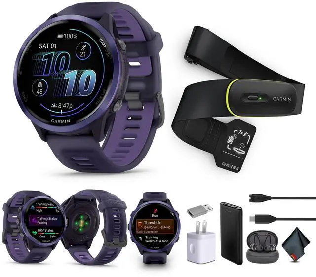 Garmin Forerunner 570 Running Smartwatch, 47MM WiFi, GPS Fitness Smart Watch For Men And Women, Indigo Aluminum with Translucent Imperial Purple/Indigo Band