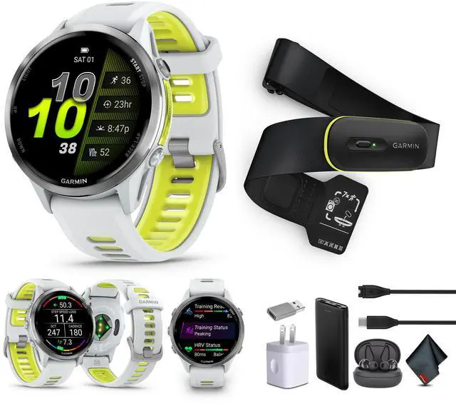 Garmin Forerunner 970 Running Smartwatch, GPS Fitness Smart Watch For Men And Women, Titanium with Whitestone Case and Whitestone/Translucent Amp Yellow Band