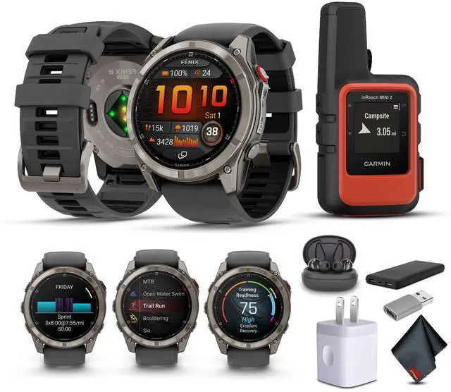 The Garmin fenix 8 Pro multisport GPS smartwatch is built for runners, climbers, divers, and outdoor athletes who need reliable communication when carrying a phone isnt practical. As the first Garmin smartwatch with integrated inReach technology, it offers LTE and satellite connectivity for two-way messaging, voice calls, LiveTrack location sharing, and interactive SOS support through the 24/7 Garmin Response center (subscription required; coverage limits apply). Its rugged design features a 1.4" AMOLED display, titanium bezel, scratch-resistant sapphire lens, and a powerful LED flashlight. Preloaded maps, round-trip routing, advanced training tools, and sport-specific activity modes support performance across land and water.