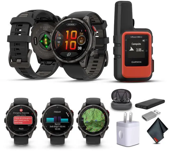 The Garmin fenix 8 Pro multisport GPS smartwatch is built for runners, climbers, divers, and outdoor athletes who need reliable communication when carrying a phone isnt practical. As the first Garmin smartwatch with integrated inReach technology, it offers LTE and satellite connectivity for two-way messaging, voice calls, LiveTrack location sharing, and interactive SOS support through the 24/7 Garmin Response center (subscription required; coverage limits apply). Its rugged design features a 1.4" AMOLED display, titanium bezel, scratch-resistant sapphire lens, and a powerful LED flashlight. Preloaded maps, round-trip routing, advanced training tools, and sport-specific activity modes support performance across land and water.