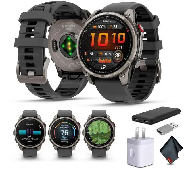 The Garmin fenix 8 Pro multisport GPS smartwatch is built for runners, climbers, divers, and outdoor athletes who need reliable communication when carrying a phone isnt practical. As the first Garmin smartwatch with integrated inReach technology, it offers LTE and satellite connectivity for two-way messaging, voice calls, LiveTrack location sharing, and interactive SOS support through the 24/7 Garmin Response center (subscription required; coverage limits apply). Its rugged design features a 1.4" AMOLED display, titanium bezel, scratch-resistant sapphire lens, and a powerful LED flashlight. Preloaded maps, round-trip routing, advanced training tools, and sport-specific activity modes support performance across land and water.