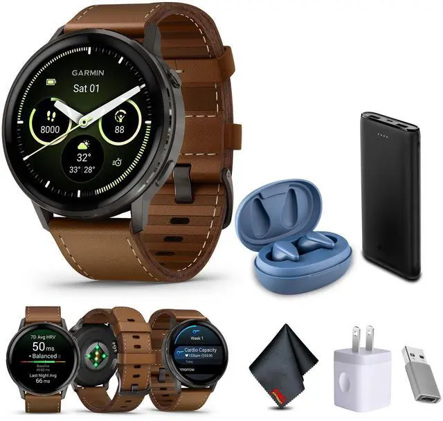 The Garmin Venu 4 smartwatch blends advanced training support with everyday utility in a sleek 45 mm design. Its bright 1.4 -inch AMOLED display is easy to read indoors or outdoors, while the lightweight case with metal accents adds durability and comfort. With up to 12 days of battery life in smartwatch mode, it keeps pace without frequent charging. Choose from over 80 preloaded GPS and indoor activity apps for running, cycling, golf, yoga, strength, and more, including triathlon and multisport profiles. Training tools like Garmin Coach, structured workout creation, daily suggested sessions, and animated on-screen guidance help you improve performance and stay motivated.