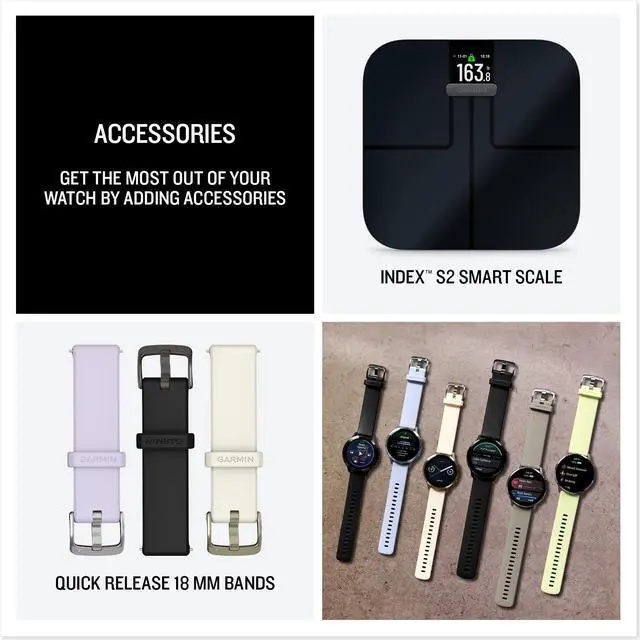 These changes could be related to physical activity levels, environment, stress, alcohol intake, potential illness and more. This feature is currently available in beta4. WORKOUT OPTIONSTrack all the ways you move with more than 80 preloaded GPS and indoor sports apps — including walking, running and more. Reach your goals with Garmin Coach training plans for running, cycling, strength and fitness; some even adapt based on your health and fitness metrics. Or get daily suggested workouts made specifically for you. LIFESTYLE LOGGINGLog custom or preset behaviors — such as caffeine and alcohol intake — and view reports on how those lifestyle choices impact your sleep, stress and HRV in the Garmin Connect app.